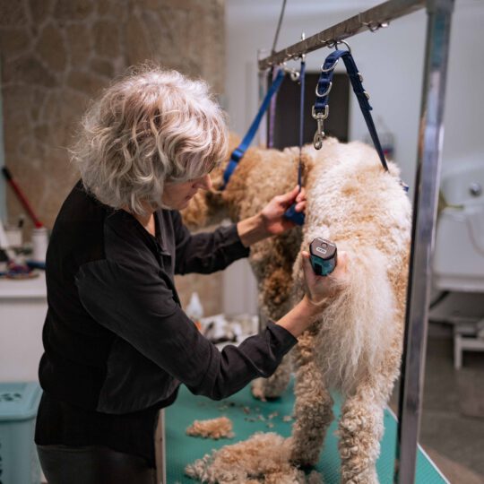 beinhaltet Trimmen bei rauhaarigen Rassen (Zupfen per Hand), Ohren-, Pfoten- und Krallenpflege, auf Wunsch Baden mit hautberuhigendem Shampoo und Föhnen.